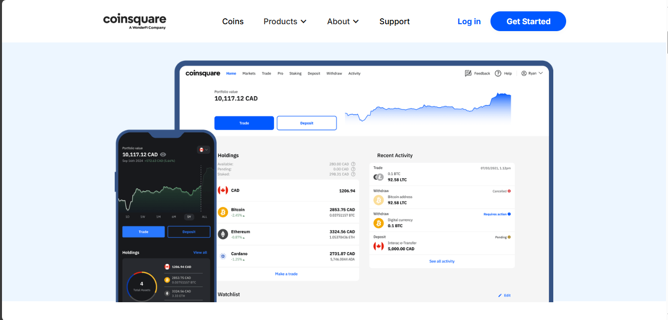 - Instant Portfolio Overview – After Coinsquare login, users can instantly view their balances, track asset performance, and monitor transaction history, all from a single dashboard.